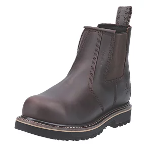 Hardwearing and traditional Goodyear welted safety dealer boots. Water-resistant, full-grain leather upper and internal waterproof membrane. Flexible composite midsole and PU/rubber outsole.